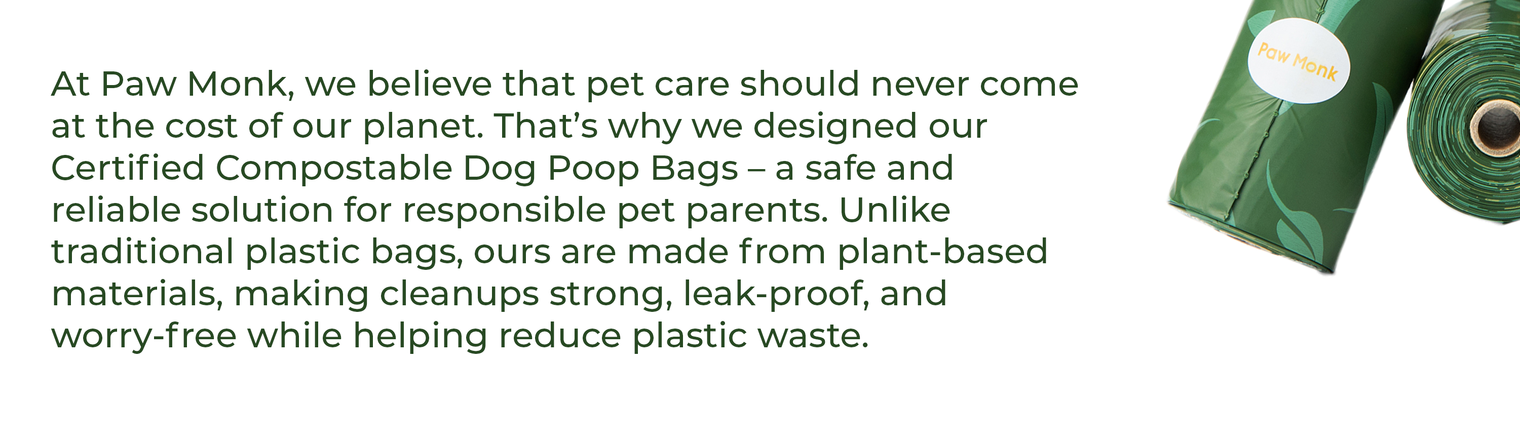 As a pet owner, you make conscious choices every day. With Paw Monk Dog Waste Bags, you can extend that care to the planet without ever sacrificing performance. our bags are crafted from certified compostable, plant-based materials designed for the modern dog owner.